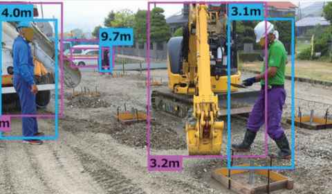 画像やセンサー情報を用いて対象物までの距離を推定する技術。