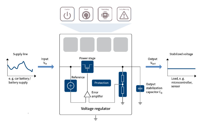 Infineon offers you a comprehensive portfolio of linear voltage regulator (VReg) and DC/DC converters fitting a broad range of industrial and automotive applications. To meet our customers' present and future application requirements, we are continuously expanding our portfolio in linear voltage regulators.