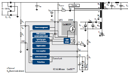 Infineon's latest 5th generation fixed frequency flyback PWM controller offers high performance and a comprehensive suite of protection to increase system robustness.