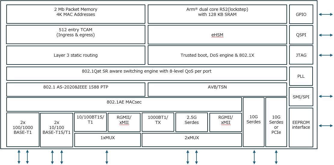 The 88Q5152 is a 9-port automotive Ethernet SWITCHES with built-in 1000BASE-T1 PHY and MACsec. Its unique feature is its ability to handle secure communications (MACsec) and AVB/TSN functions in inter-ECU networks on the same device. It also features a dual-core ARM R52 CPU and high-speed SerDes. It supports multiple TSN-related standards, including IEEE 802.1CB. This article focuses on 802.1CB, which enables redundancy.