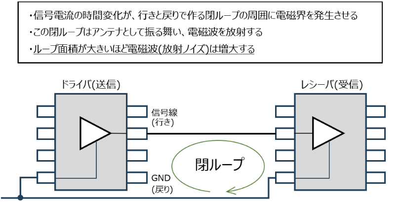 If this return path is interrupted or separated, the closed-loop area formed by the current's "forward" and "return" flows increases, leading to an increase in electromagnetic noise generation. Therefore, care must be taken to keep the loop area as small as possible from the initial design stages.