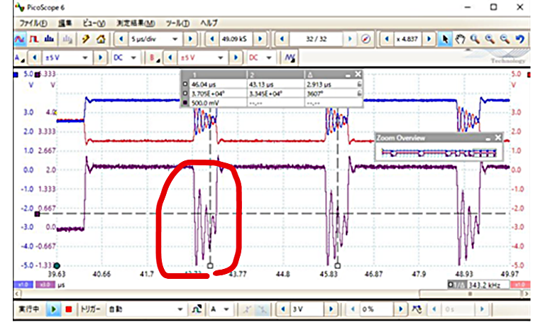 FD通信は、従来のCAN通信に比べて、大量のデータを高速で送受信することが可能になりますが、その際にバス通信ライン上に信号リンギングが発生して通信誤動作を引き起こす可能性があります。