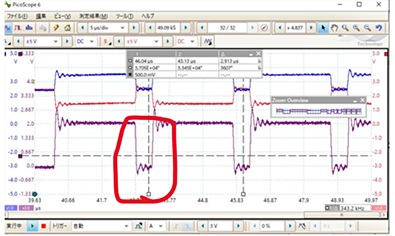 SIC効果によってリンギングのレベルは0.5V以下に抑えられるのでドミナントに間違う可能性が無い事がわかります。