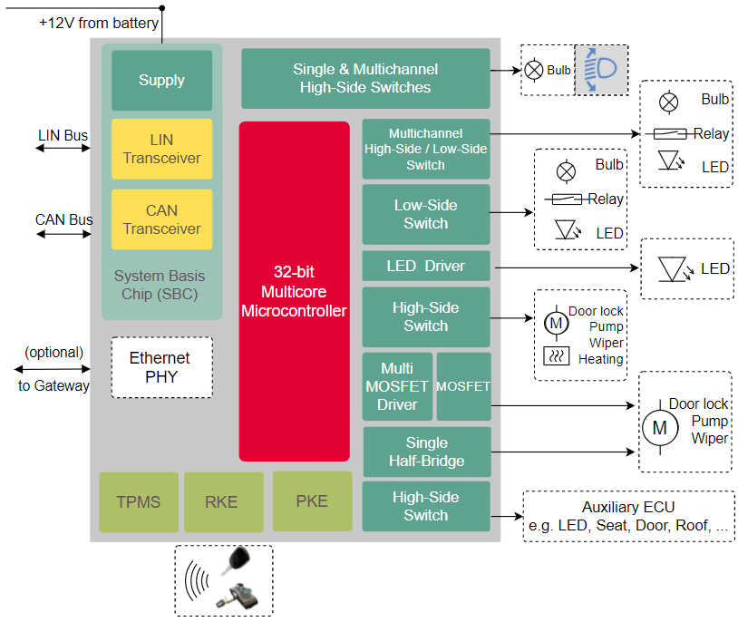 ・マイクロコントローラ機能 - 低コストBCMから高度なセキュリティ機能を備えたゲートウェイ一体型BCMまでさまざまなシステム要件に対応