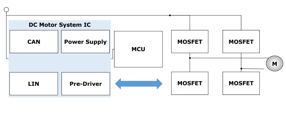 マイコン+ドライバーを内蔵したEmbedded Power ICsとMOSFETの組み合わせで実現可能です。