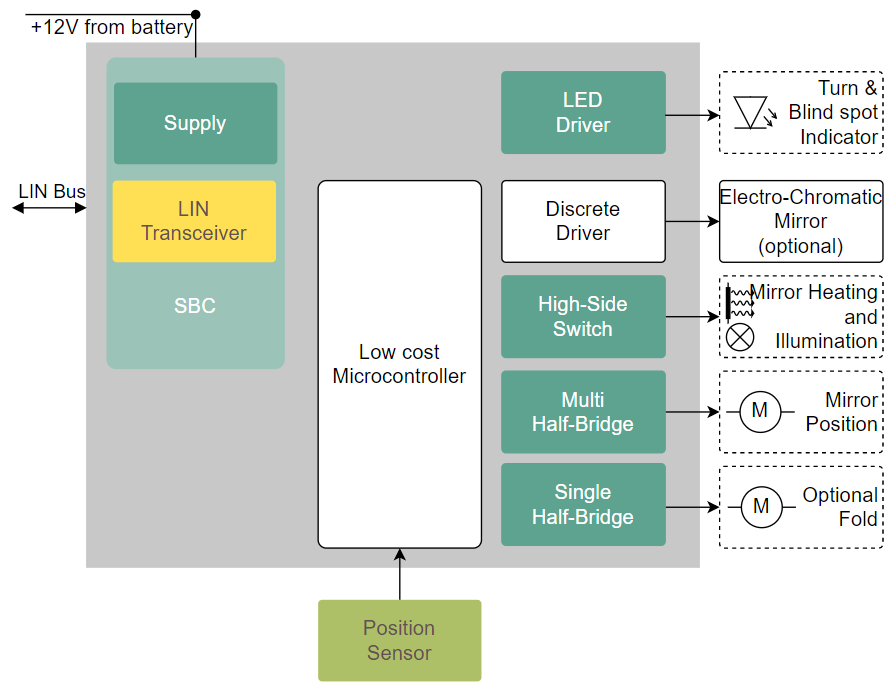 ドアミラー設計上の課題としては、自動車メーカーのプラットフォーム戦略によって、設定される品種の数がどんどん増加していることがあげられます。さまざまな品種について、1つのプリント基板設計で容易に対応するためには、製品ファミリーの拡張性が重要になってきます。インフィニオンのパワースイッチIC、PROFET™は、市販品のハイサイドスイッチで最も拡張性の高いポートフォリオになっています。