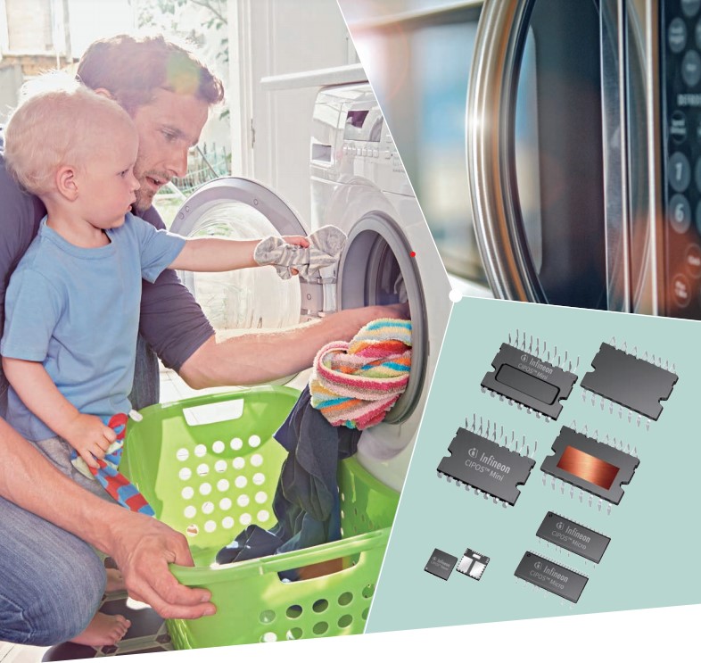洗濯機および乾燥機向けのインフィニオンのコンポーネントは、統合が容易であり、より小さく薄いフォームファクタ、より小型のパッケージ、高い出力密度を備えており、競合他社よりも一歩抜け出るために必要な信頼性とエネルギー効率を提供します。