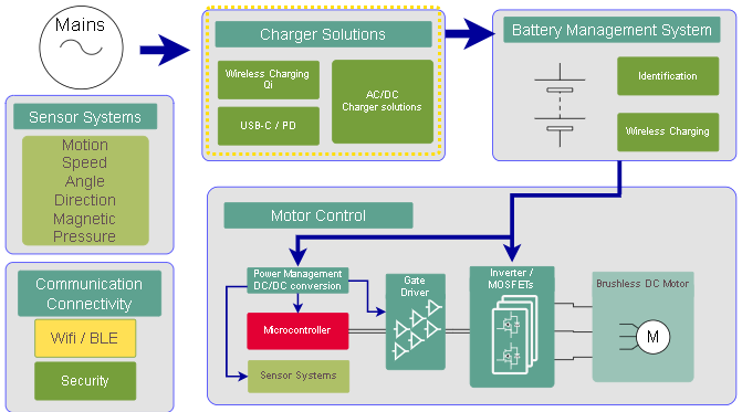 以下のリンク先より、掃除機の各ブロックごとに、インフィニオンが提供する様々な半導体を御覧いただけます。