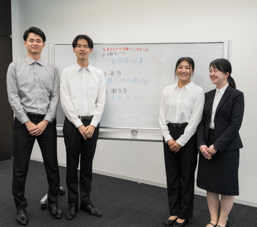 挑戦を後押しする風土 若手社員が取引先との情報交換の場で積極的に質問するなど、「挑戦」を歓迎する文化があります。ベテラン社員も若手のような情熱を持ち、常に新しいことに挑んでいます。たとえば、商品の改善においては、既存の方法にとらわれず、ゼロから新しい機能を提案するなど、0→1の立ち上げにも積極的です。