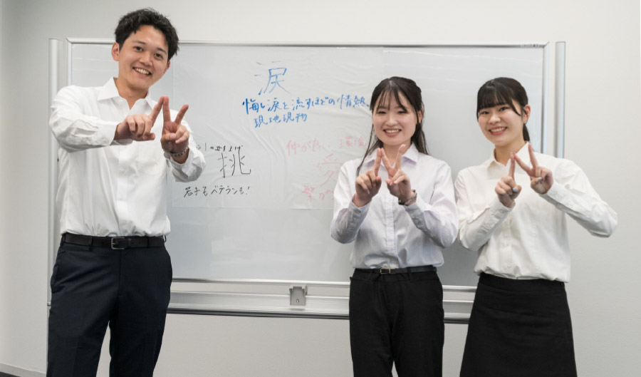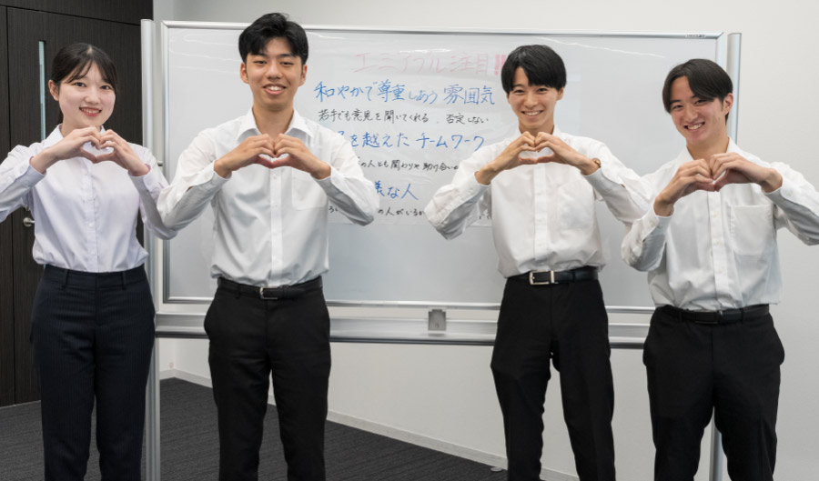 情熱があふれる瞬間 ある先輩社員は、仕事で挫折を経験した際、悔し涙を流したそうです。それほどまでに情熱を持って仕事に向き合う社員が多く、真剣に取り組む姿勢が社内に根付いています。また、「現地・現物・現実」の考え方を大切にし、現場で実際に見て・感じて・理解することを重視しています。