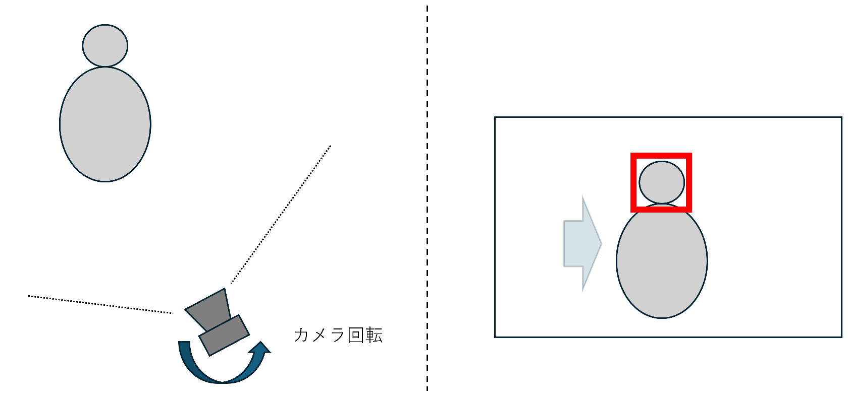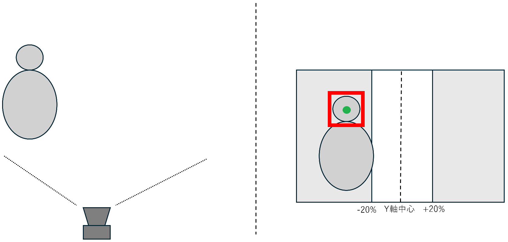3. 顔の中心座標のX値が画面中央から±20%に収まらない場合は中央側にカメラを移動