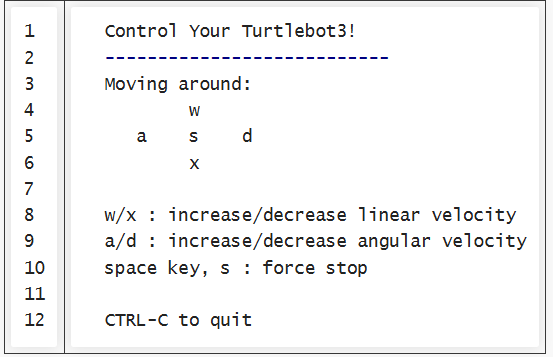 $ roslaunch turtlebot_teleop keyboard_teleop.launch