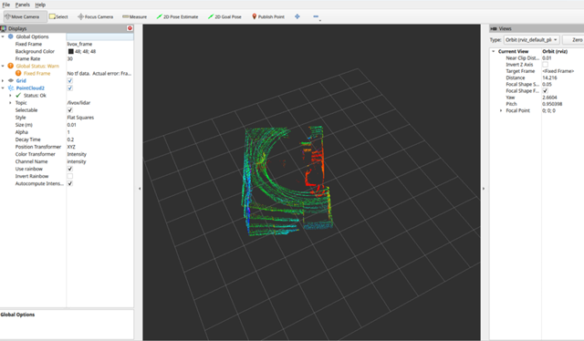 と感じる場合がありますが、これらは RViz 側の表示設定(点サイズや色設定)を調整することで見やすくできます。