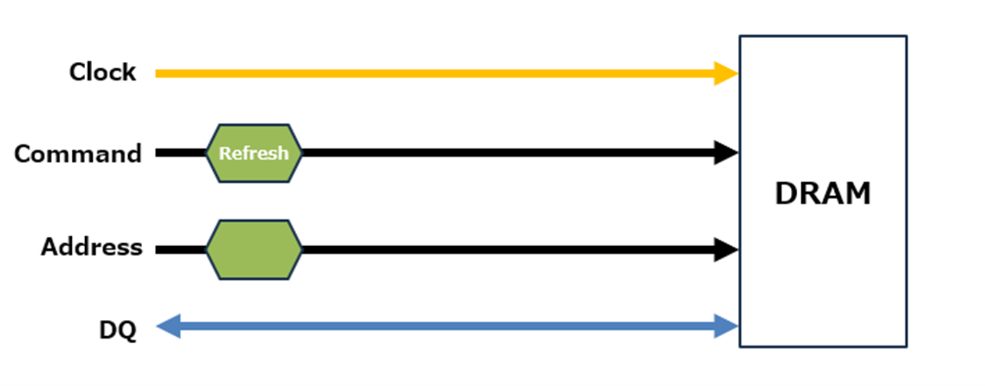 DRAM は、コントローラーが CA(Command / Address) と呼ばれる信号線を介して、読み出し(Read)、書き込み(Write)、リフレッシュ(Refresh)