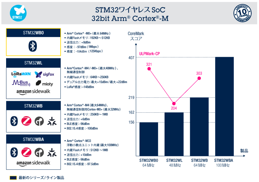 STM32ワイヤレスSoC製品ポートフォリオ