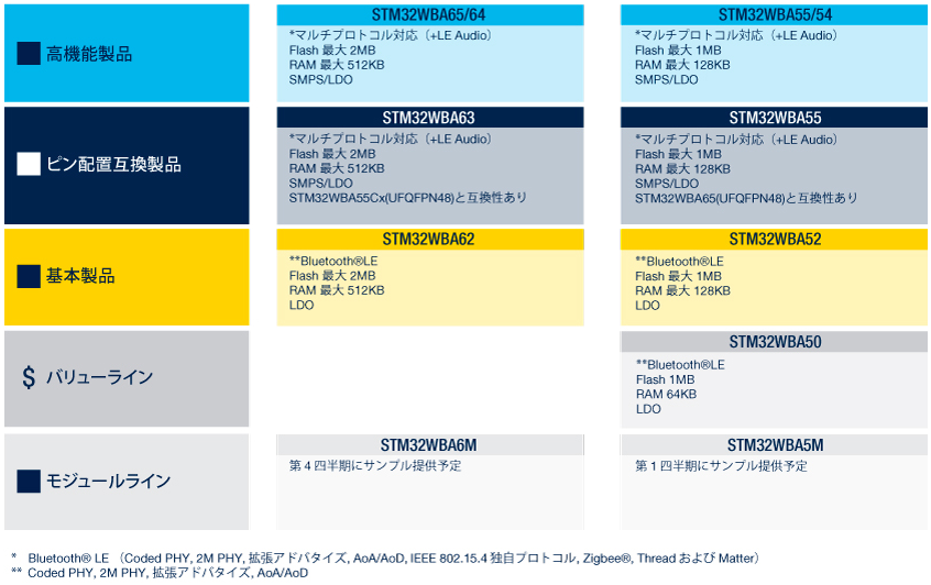 STM32WBシリーズ製品ポートフォリオ