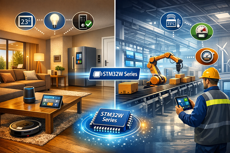STM32Wシリーズは、無線通信、セキュリティ、低消費電力を1チップで統合したワイヤレスSoCとして、さまざまなIoT分野で採用されています。ここでは、代表的な応用分野ごとに、なぜSTM32Wシリーズが選ばれているのかを設計観点から解説します。